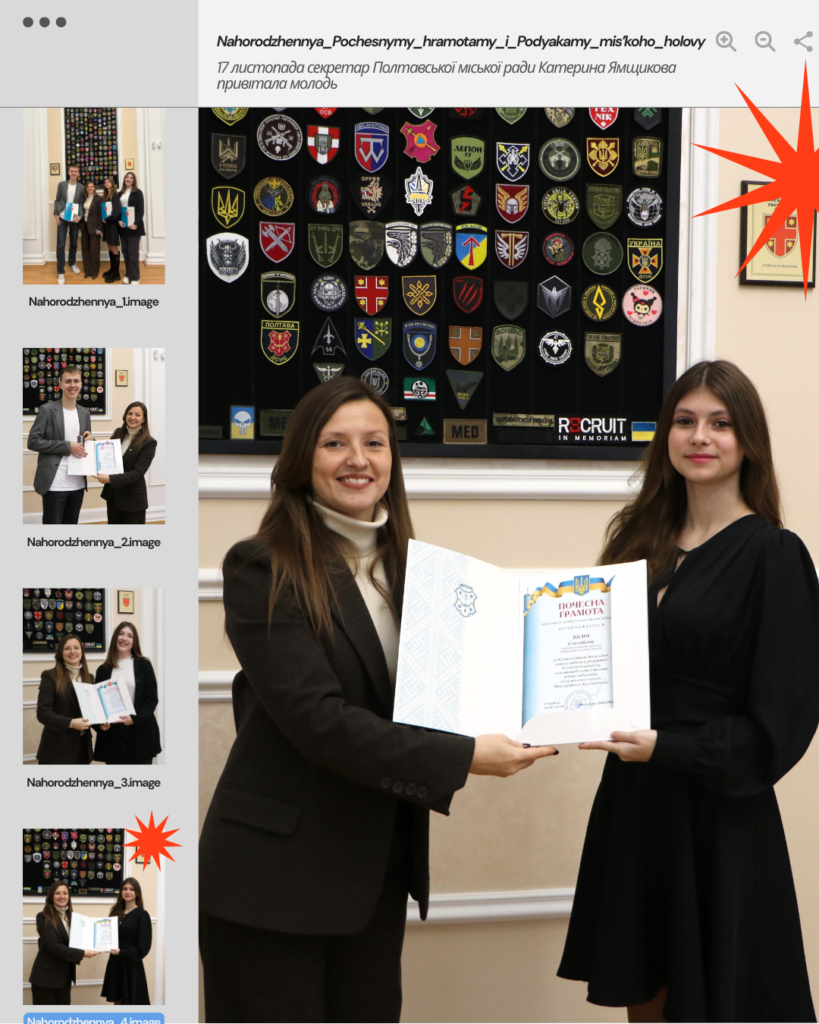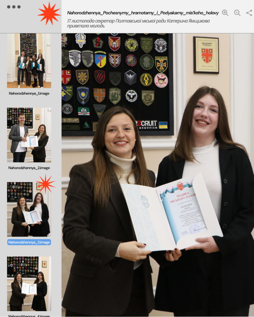 🏅 Почесна грамота виконавчого комітету Полтавської міської ради • Вісич Єлизавета — студентка 4 курсу спеціальності D8 Право